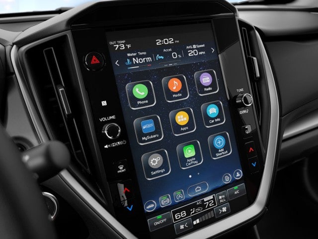 - Radio: Subaru 11.6" Multimedia Plus System -inc: valet mode, AM/FM stereo, HD Radio, multi-touch gesture high resolution display screen, voice activated controls, Bluetooth® audio streaming and hands-free phone connectivity, Bluetooth® hands-free SMS text messaging connectivity, iPod control capability, smartphone integration: wired and wireless Android Auto w/full screen view, wireless Apple CarPlay w/full screen view and wireless connection, USB and Over The Air (OTA) audio system update, audio system and Bluetooth® steering wheel control switches, 6 speakers (2 dash panel tweeter, 2 front door, 2 rear door), illuminated 3.5mm auxiliary input jack, illuminated USB A and C input charge ports, roof mounted satellite and connected services, roof mounted black antenna, connected services operation indicator, SOS emergency assistance (red button) and ehanced roadside assistance (blue i-button)
